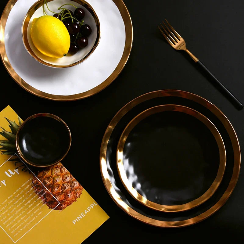 Phnom Penh Ceramic Western Dish Matte gilded steak plate Creative retro salad plate plates set Northern European dessert dish